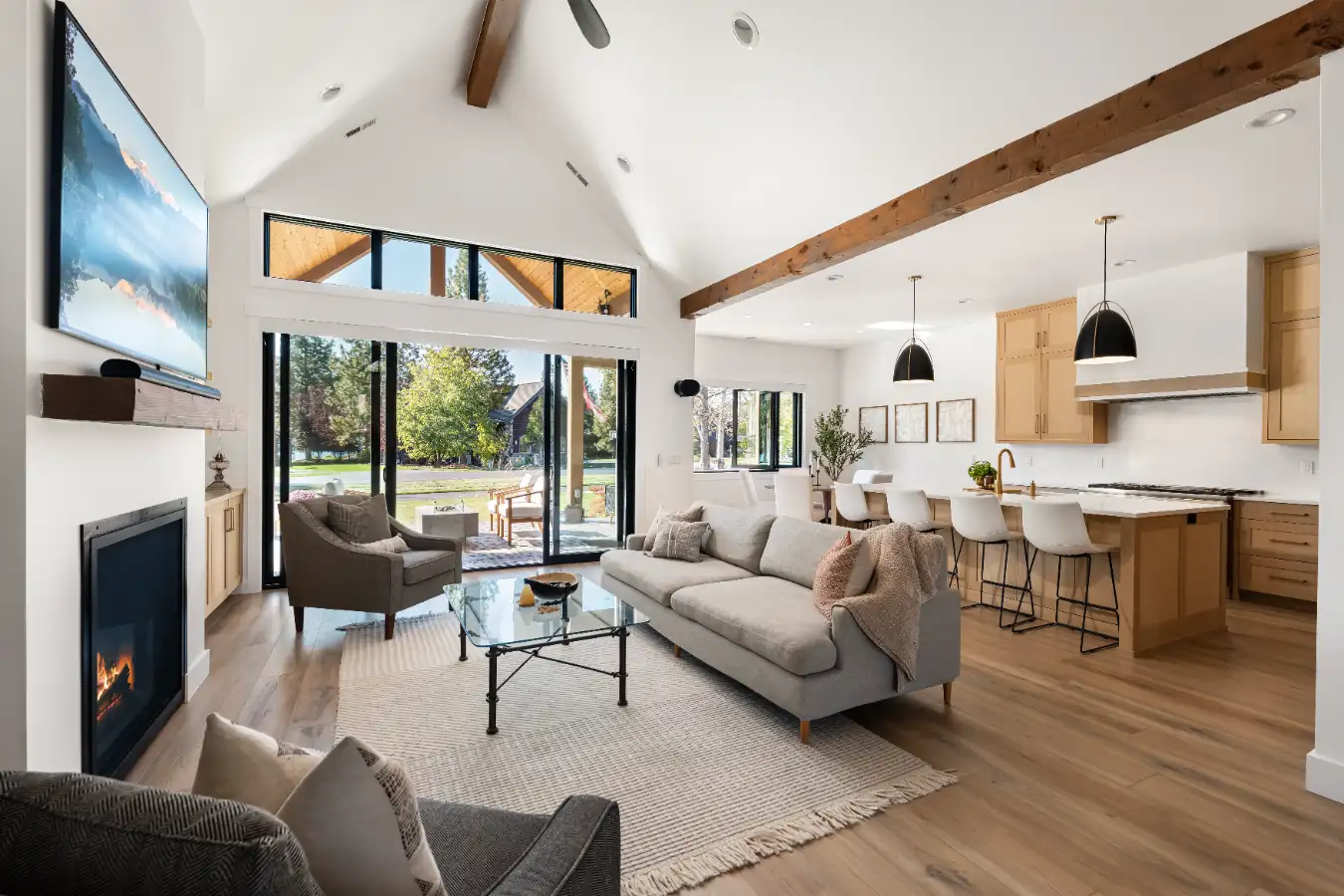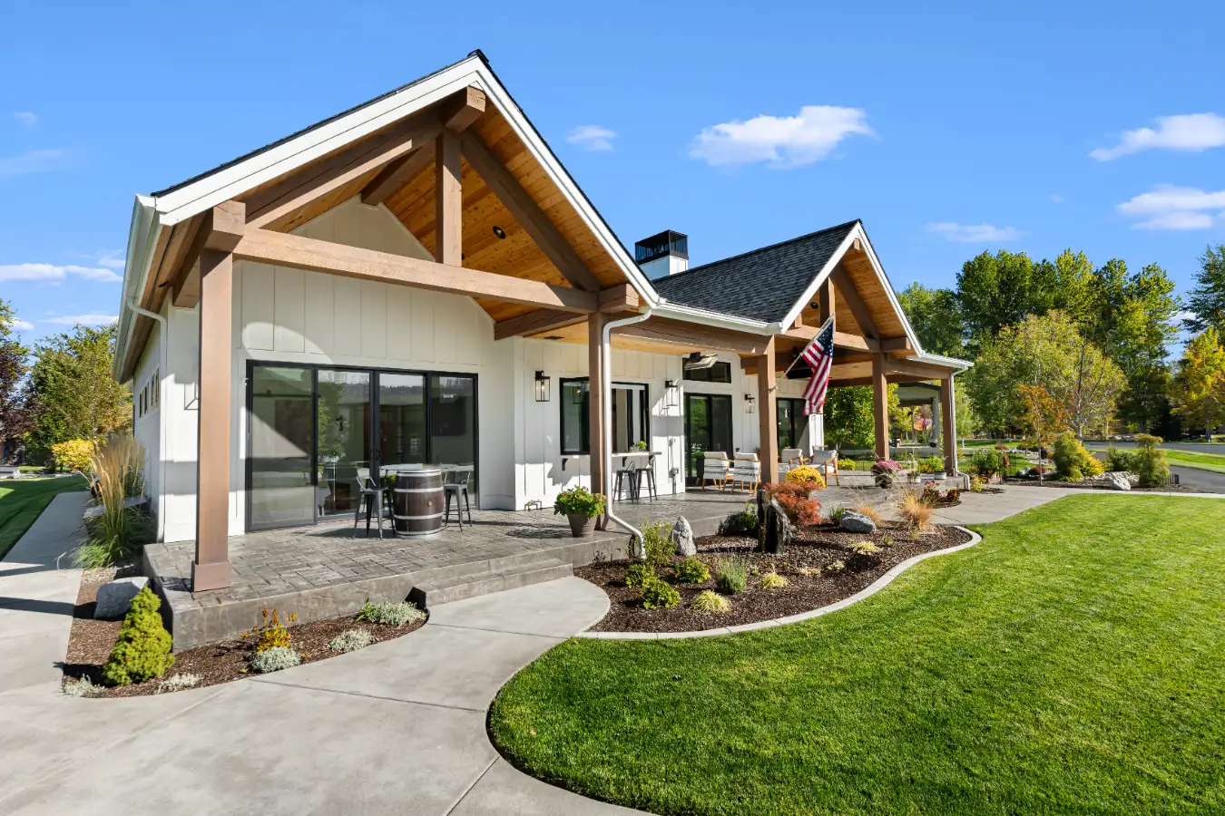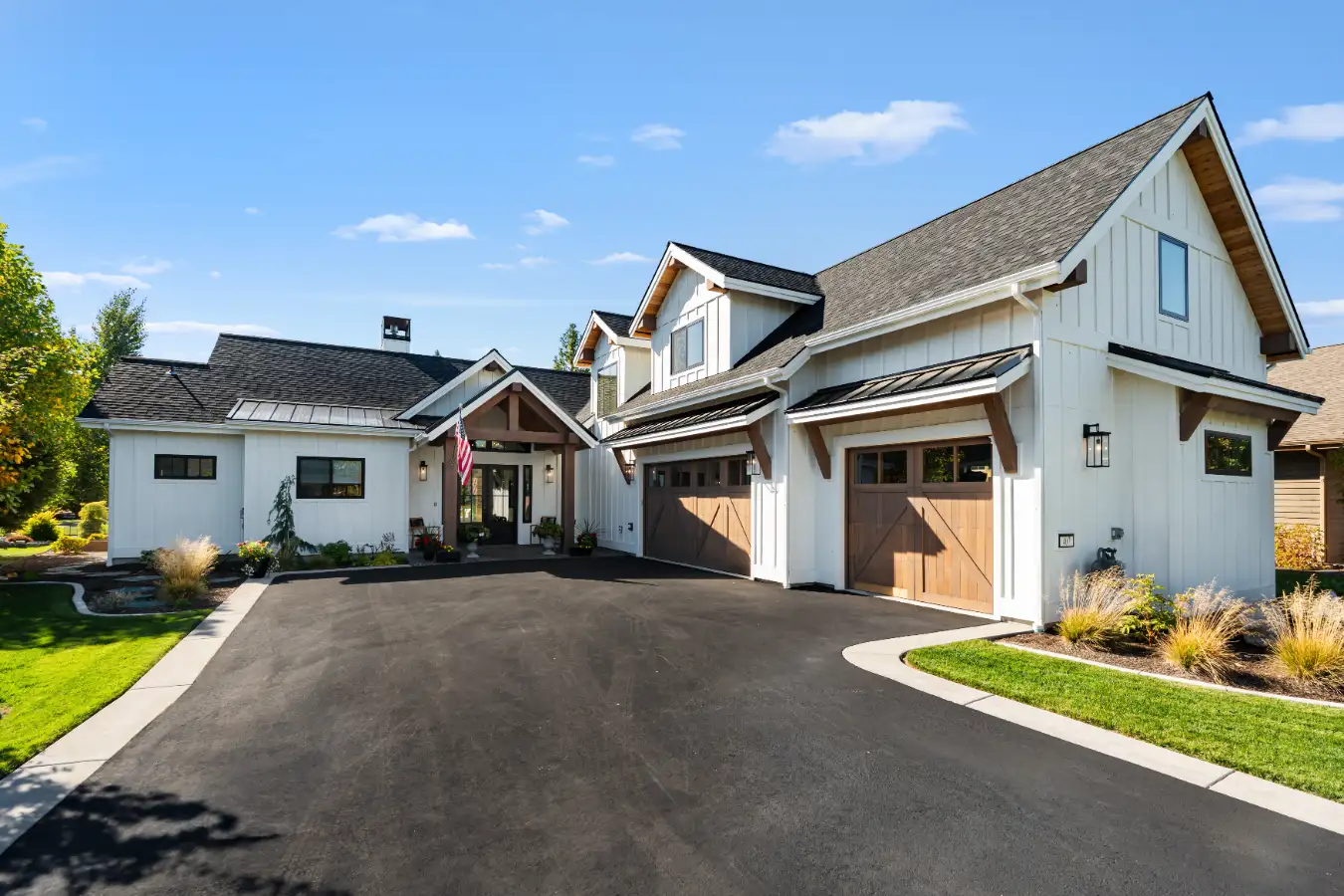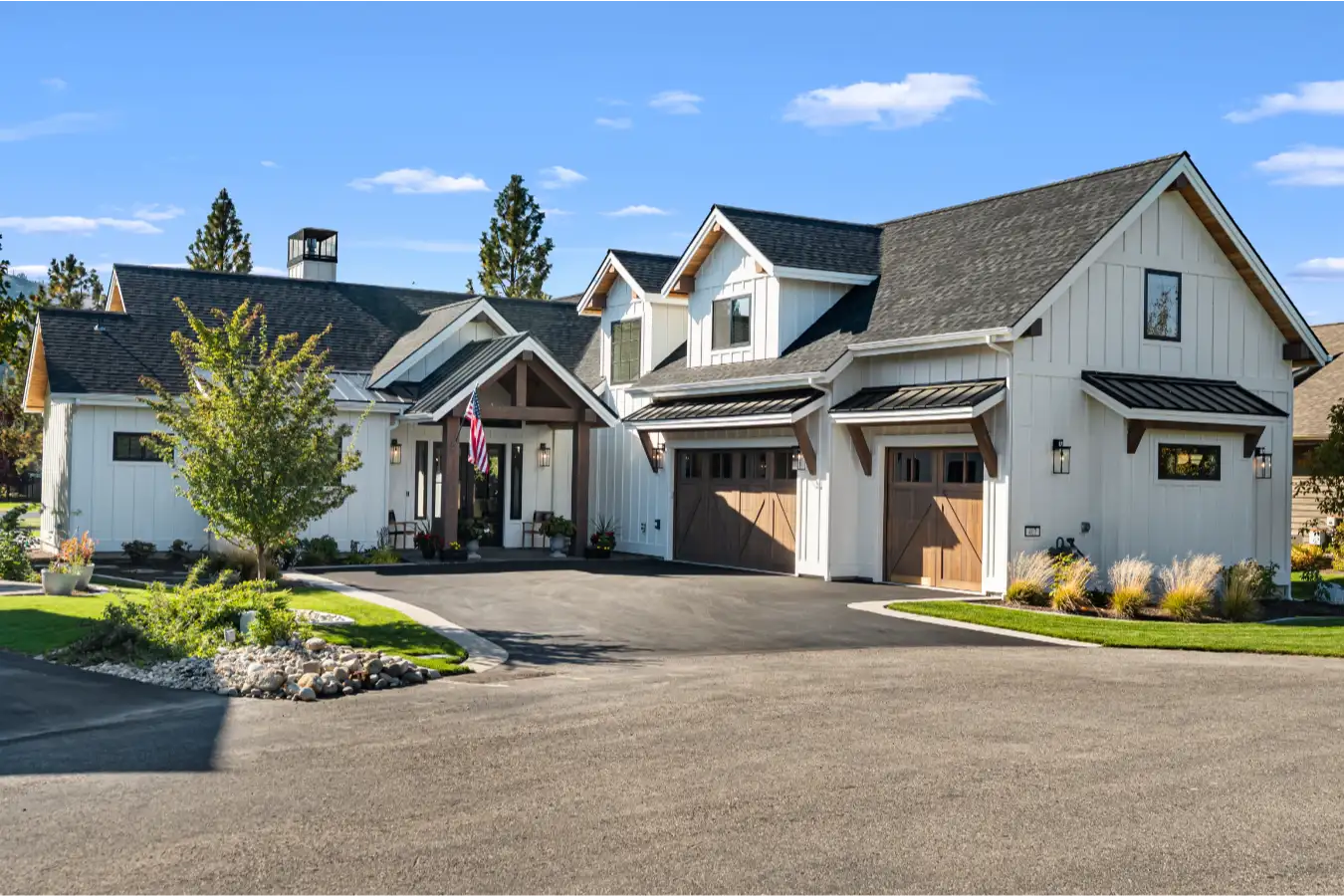 Nestled along the serene shores of Dover Bay in northern Idaho, this modern farmhouse is thoughtfully designed to support comfortable, multi-generational living while embracing the natural beauty of its surroundings. Blending timeless farmhouse character with clean, contemporary lines, the home feels both welcoming and refined.