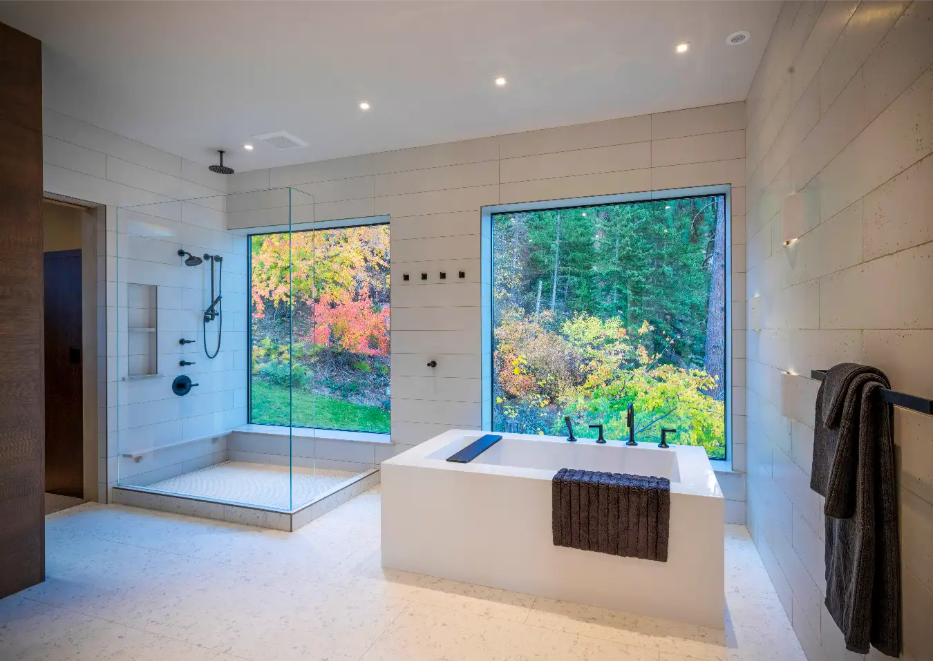 3,500 sq. ft. of a Cotemporary Modern masterpiece on Lake Pend Oreille, North Idaho. The home boasts magnificent views of Lake Pend Oreille’s stunning Green Monarch Mountains from the walls of windows that allow for 180 degrees of the panoramic landscape across the open waters of the lake. With the fact that it’s remote and very private, the home is nestled against the granite mountain backdrop of Garfield Bay. Truly a gem ! ! !
