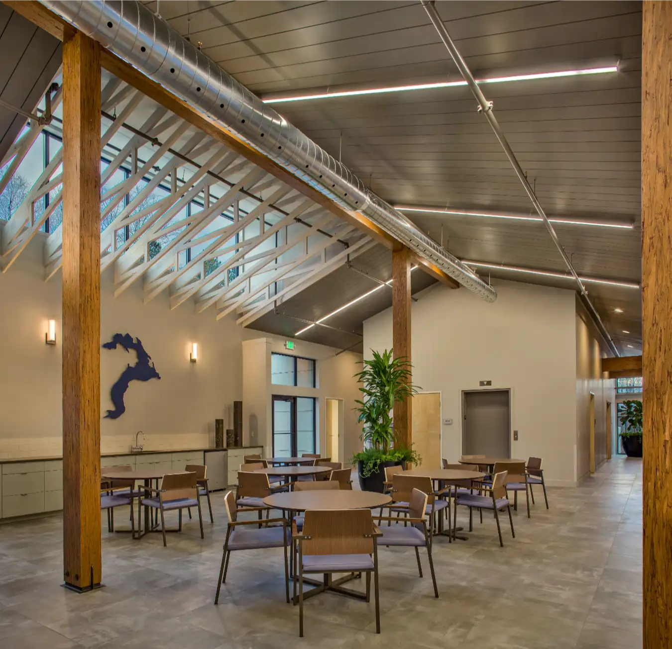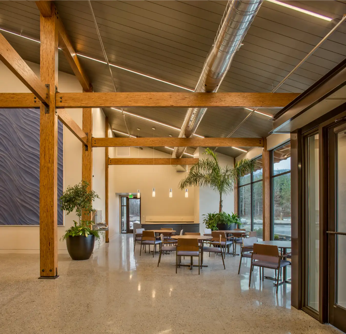 The 15,000 sf medical facility was constructed over a 12-month period within an existing medical village. Extensive use of laminated timbers and glass make this a striking building that quickly reached full occupancy.